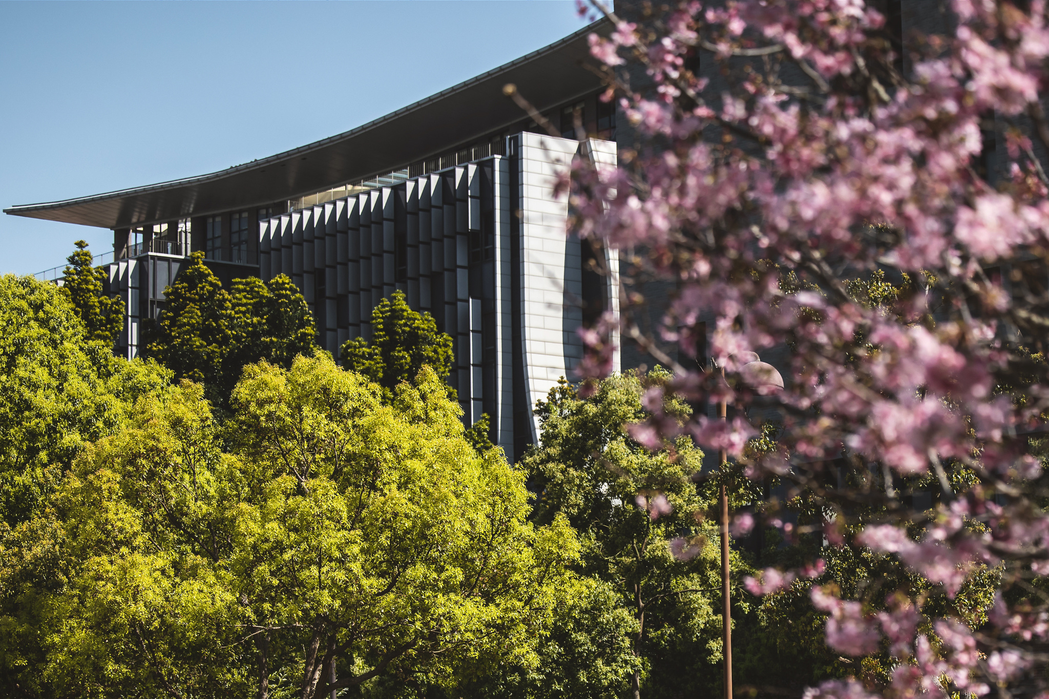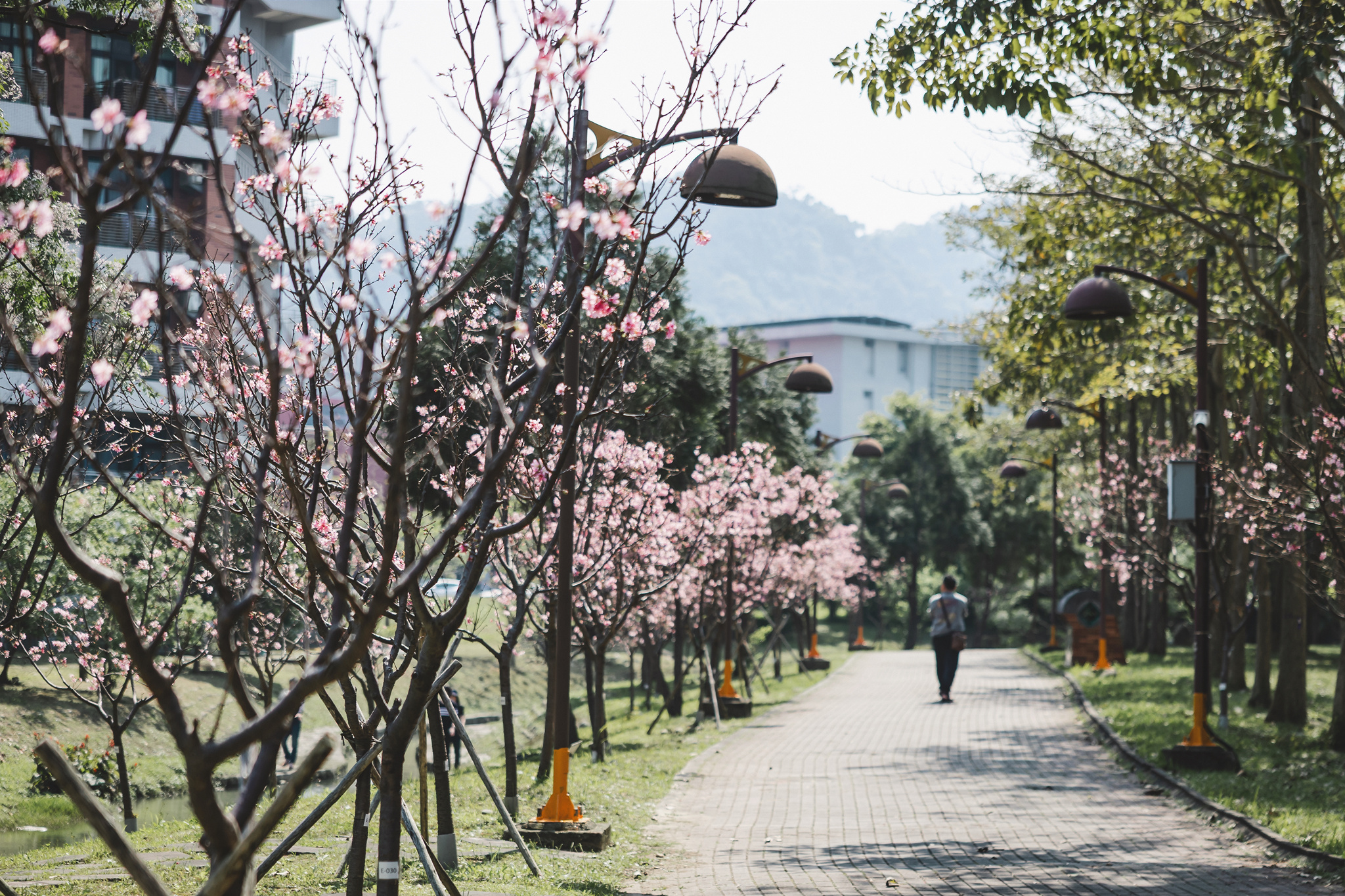 校友總會張平沼榮譽理事長秉持對母校的深厚情感,慨捐千棵櫻花樹,點亮臺北大學心湖周邊,讓校園在春日時節化為一片絢麗花海。